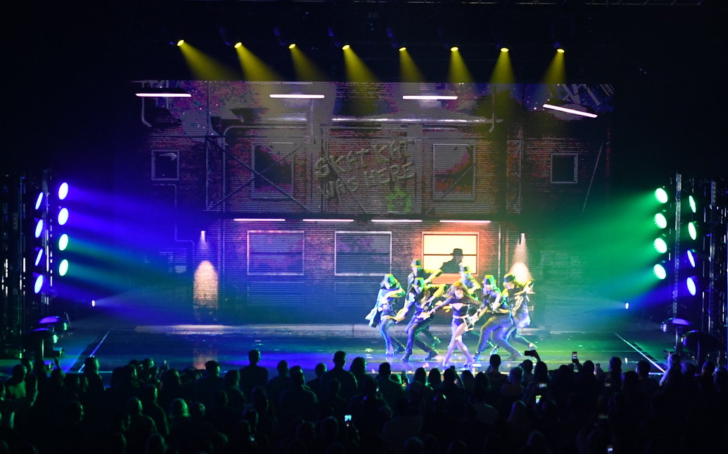 The energetic and tightly produced music, choreography, and visual design of the show were matched in intensity and enhanced by the lighting design. The compact and tour-friendly lighting system delivered impressive effects and impact to audiences, giving the production a powerful bang for their buck.