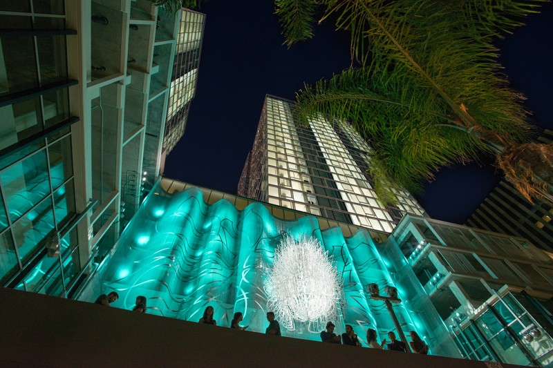 Our work with Cliff Garten has taken on a number of these non-traditional settings, transforming parking garages and plazas with enormous, illuminated sculptural pieces. These projects have innumerable moving parts that necessitate both expert project management as well as minute lighting precision. Garten often brings Lightswitch on at the very inception of a project, opening up the dialogue as well as a collaborative setting to ensure that the lighting and artwork are not only complementary, but energize each other for a holistic, dynamic result. For our work with Garten on the stunning “Los Angeles Opens Its Heart of Compassion,” we worked extensively on previsualization efforts that allowed Garten to review the design before the lighting was ordered. This tactic created a seamless transition from design to implementation efforts.