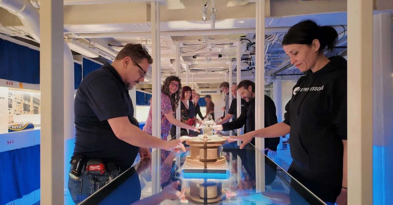 Their first stop: the ship’s engineering spaces. In December 2023, the unused 4,000-square-foot space looked like a construction zone, filled with debris. Over the next five months, a team of designers, technicians, and volunteers transformed it into an immersive exhibit honoring the USS Midway’s invisible heroes, the engineers who kept the aircraft carrier operational.