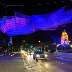 The monumental floating form of 1.78 is composed of layers of fiber, braided and knotted together in vibrant hues that pulse with changing wind and weather to create a choreography of undulating color. At night, the sculpture comes to life with projected colored light. Lightswitch worked with the artist Ms. Echelman to bring her vision for the night time aesthetic of her project to life. It was important to balance not only the need to perfectly illuminate Ms. Echelman’s work, but also ensure safety for the busy traffic on Santa Monica Blvd, a major Beverly Hills thoroughfare.
