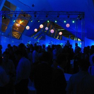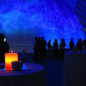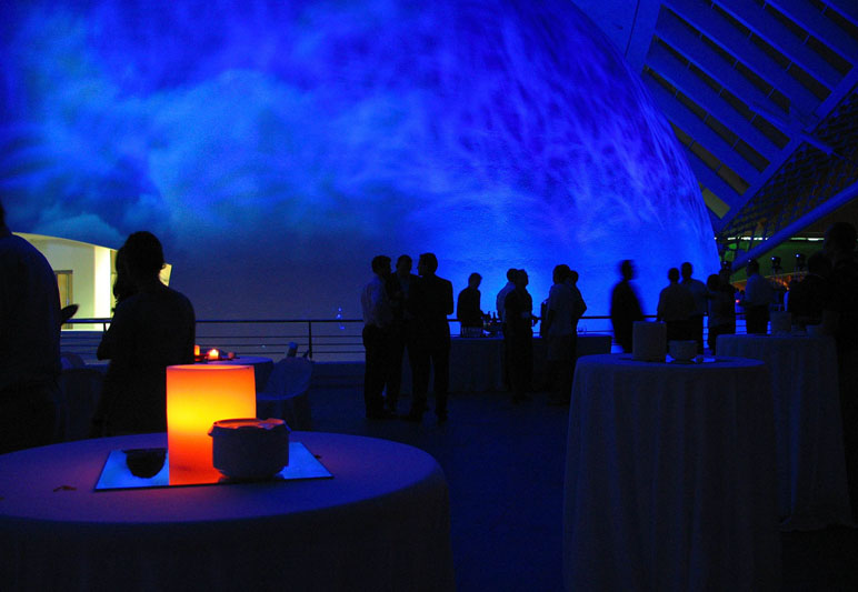 Adapting to a tight schedule and a stunning yet challenging location, Lightswitch succeeded in creating a great client experience. The center globe houses an Omnimax theater, and was to remain accessible to the public for all but the few hours of the actual party. In addition, access to the facility for installation was restricted by a combination of schedule and budget. By careful planning, partnering with local resources and utilizing the most powerful fixtures we could get our hands on, we were able to design a simple yet flexible lighting system that could be rapidly deployed.