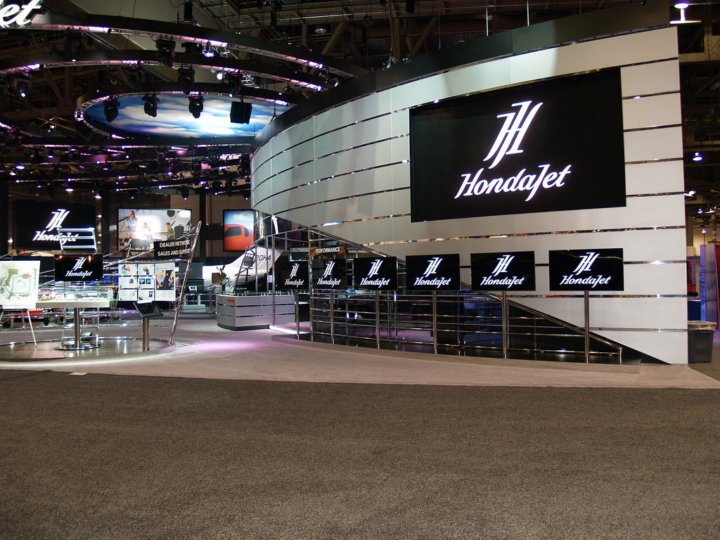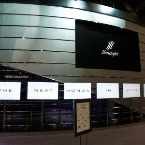 NBAA is the major private aviation expo in the US. Manufacturers and suppliers in the bespoke private aviation market exhibiting their products and services to customers from around the world. In the late 1980’s Honda turned the private aviation market on its head when they announced they would enter the market with a revolutionary design. NBAA 2011 marked another major step forward in the evolution of the aircraft design, and Hondajet wanted to make a memorable impression.