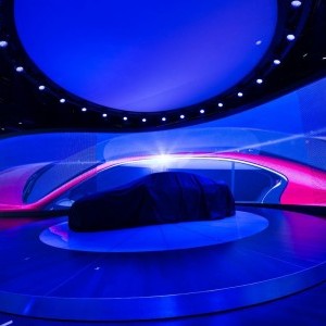 Lightswitch designed the lighting for the new booth and in-booth press events. In keeping with Infiniti’s goal of creating an immersive, experiential environment, Lightswitch designed lighting that supported the content-based booth architecture and showcased the vehicles on display. To keep visitors’ focus on the video screen surround, we used an unobtrusive, black overhead lighting grid that visually receded into the ceiling. The canopy-mounted lighting fixtures spotlighted cars on the exhibit floor and bathed the audience in richly colored illumination that complemented the on-screen imagery during press events, serving as an extension of video surround.