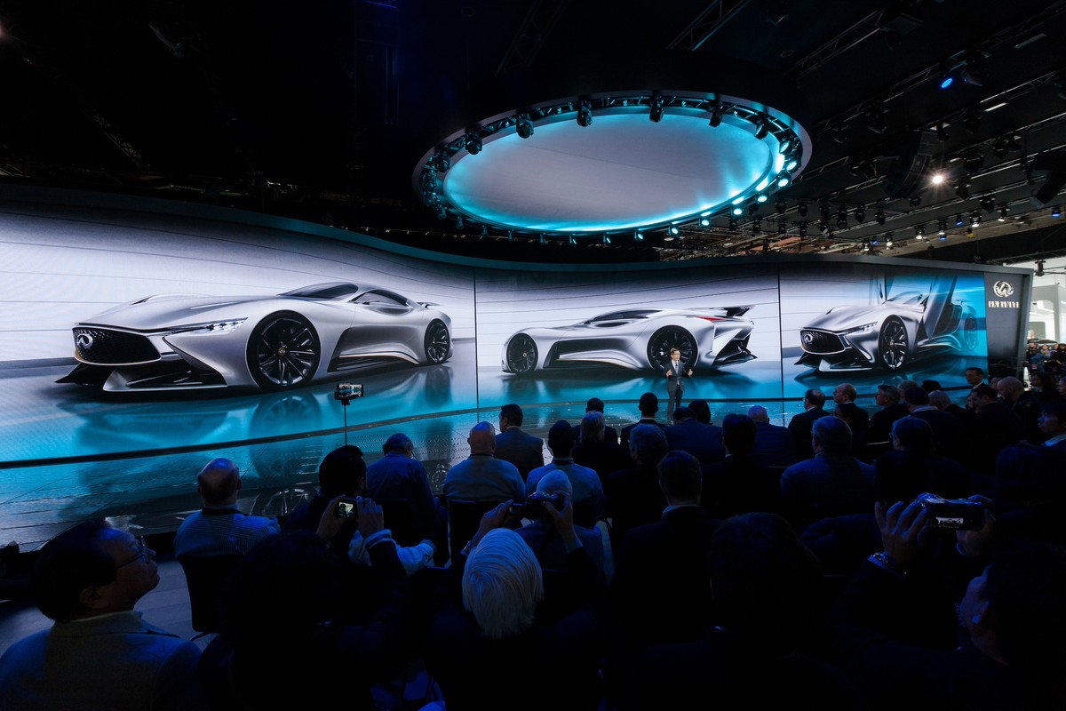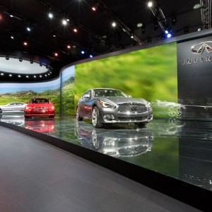 Content was king at Infiniti’s 2014-15 North American auto show exhibit. The luxury car brand revealed a new auto show identity in Detroit that immersed visitors in Infiniti-branded content. Exhibit producer and architect George P. Johnson designed the new exhibit booth, which featured a massive video screen surround that served as the backdrop for Infiniti’s product unveilings and press events.