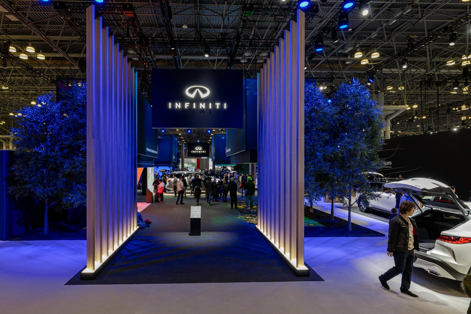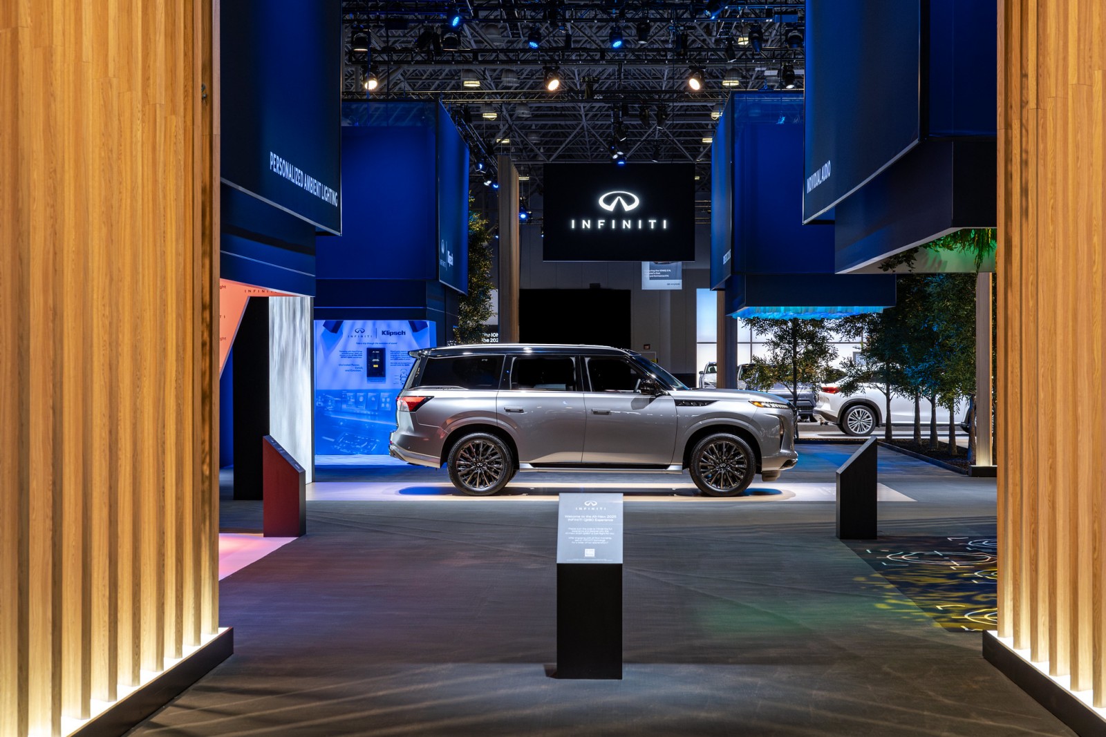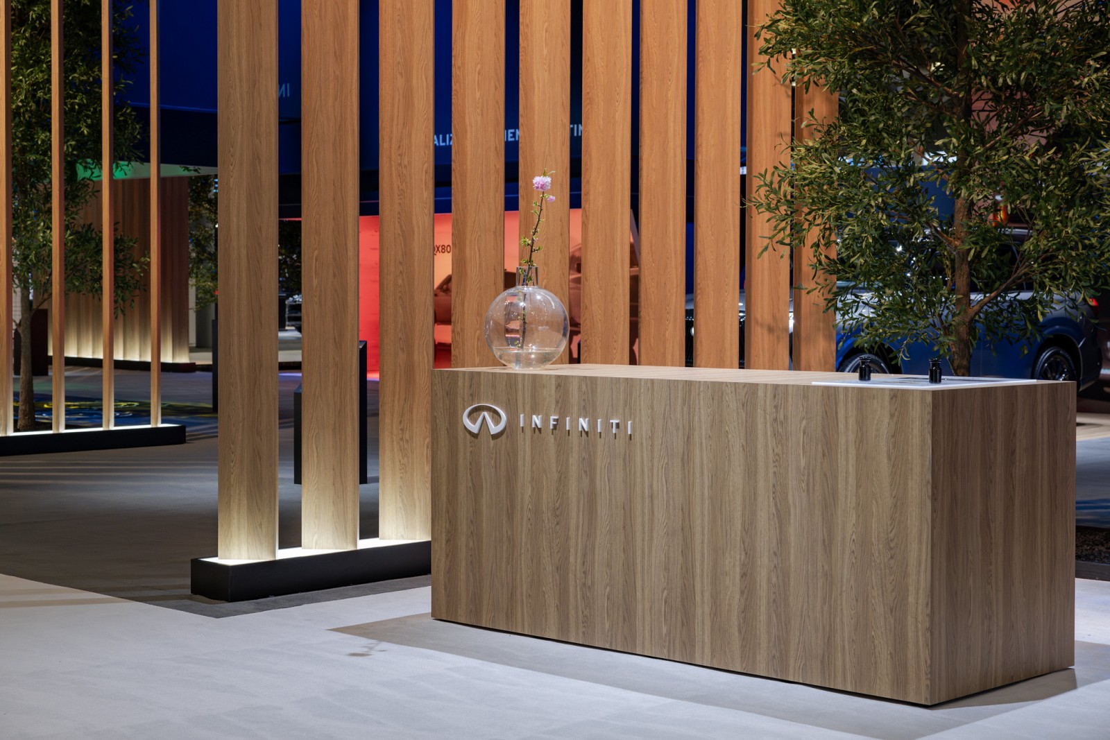 Infiniti’s museum-like display attracted visitors with its distinct design. Once inside, they were treated to a curated, exclusive experience centered around the new QX80 flagship SUV, surrounded by appearances from the rest of the Infiniti product lineup. Our design ensured the exhibit stood out from the competition by embracing a balance of nature and architecture, all while communicating a distinct sense of luxury.