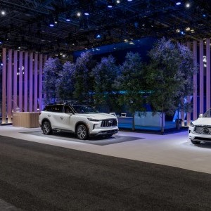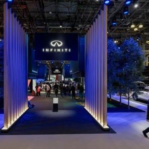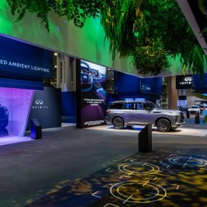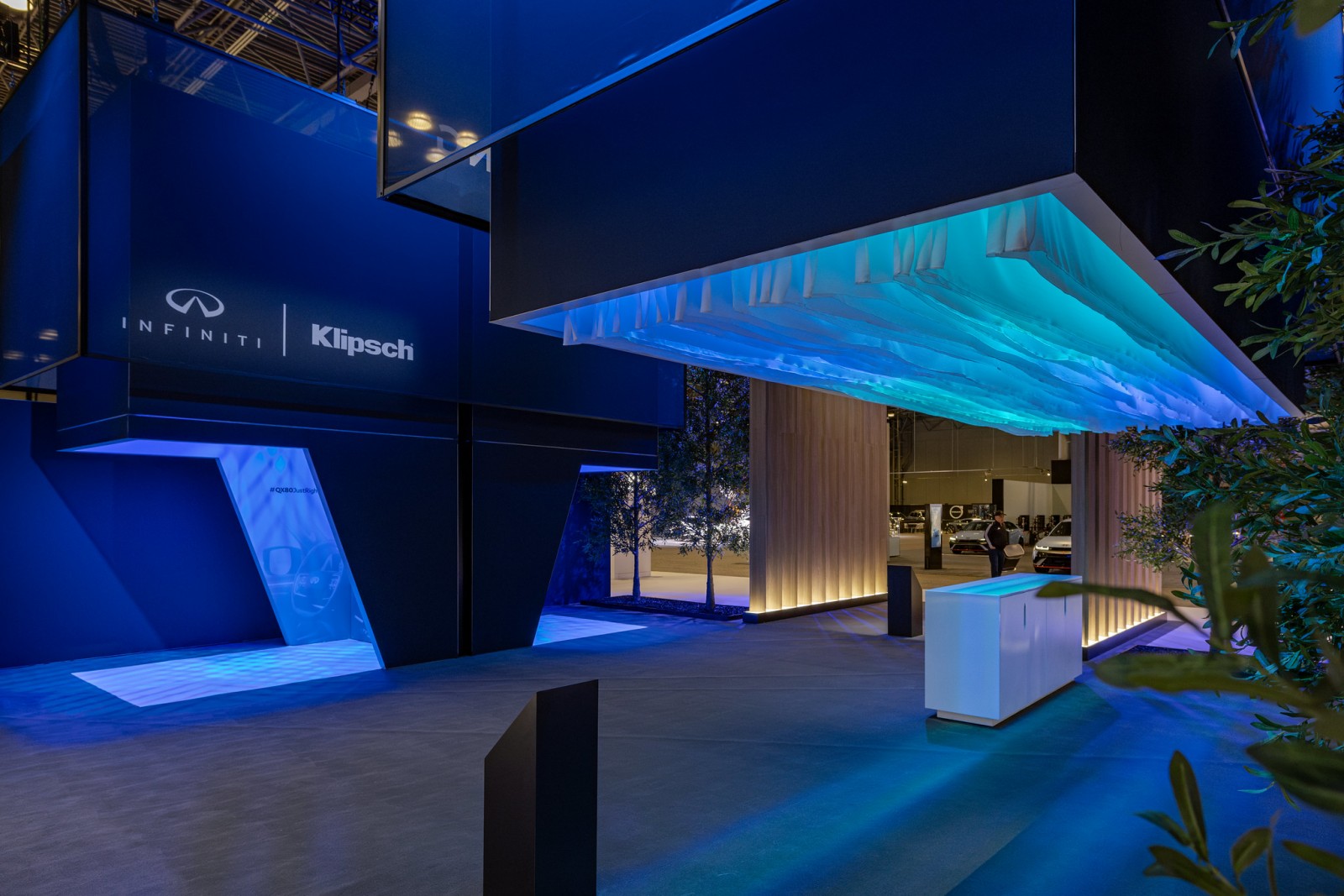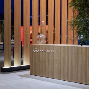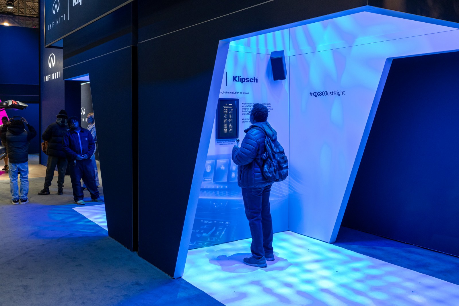 Infiniti’s museum-like display attracted visitors with its distinct design. Once inside, they were treated to a curated, exclusive experience centered around the new QX80 flagship SUV, surrounded by appearances from the rest of the Infiniti product lineup. Our design ensured the exhibit stood out from the competition by embracing a balance of nature and architecture, all while communicating a distinct sense of luxury.
