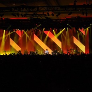 Working with frequent collaborators GO! Experience Design, Lightswitch crafted design solutions for two rooms—one an immersive arena style general session, the other a flexible setting for meals, awards and a concert by one of the world's biggest entertainers.