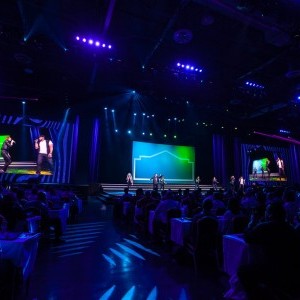 Effective lighting design is a hallmark of Lightswitch, and this project was no exception. Lighting ranged from a high-energy production opening to setting the tone for effective business communication, with content and media design added to the entertainment scope. By integrating one, focused design team across the entire event, Lightswitch was able to work with GO! Experience Design to craft an appropriate and tailor-made experience for the attendees with a cohesive aesthetic across the entire event.