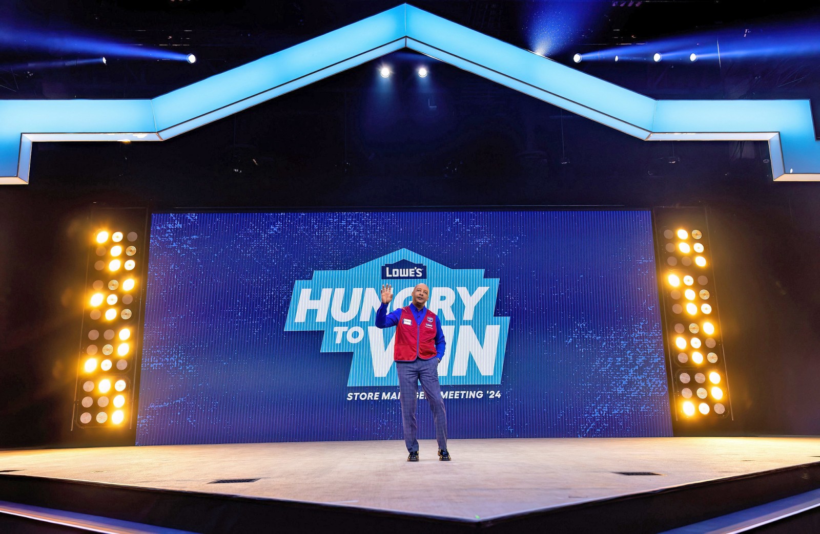More than 3,000 leaders from across Lowe’s management gathered in Las Vegas as the company staged its 2024 Store Managers’ Meeting. Each year at this three-day meeting, attendees come together to discuss the company’s strategic direction, prepare for the coming months, and get motivated to lead their teams through the year. The theme of this year’s meeting was a sports-centric “Hungry to Win” – a recognition of what Lowe’s must do to continue to be successful in the future, and a reminder of all the ways Lowe’s employees serve customers in the communities where they live and work. Producer XD Agency brought Lightswitch to the event to help craft a memorable and inspirational experience for the guests.