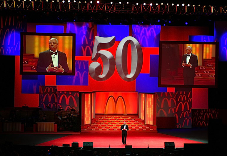 McDonald's had a lot to celebrate – 50 years of success, 50 years of growth, and 50 years of support for the community. A gala evening at Chicago’s Arie Crown Theater featuring production numbers, video retrospectives, speeches by McDonald's leaders, an address by Colin Powel and a performance by the legendary Elton John made for a night of celebration to mark this auspicious occasion.