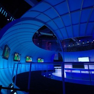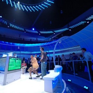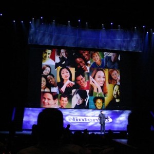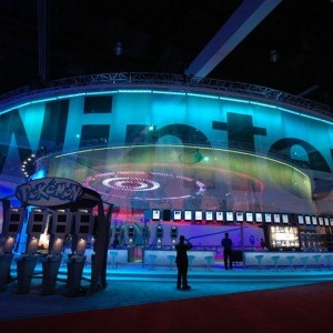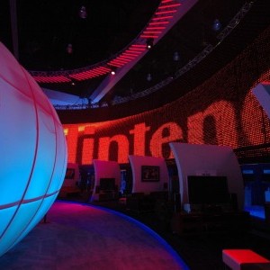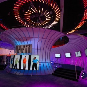 For the reveal of the “Wii” at the Kodak, Lightswitch conceived a design using an array of automated fixtures that created a clean and edgy look and brought complete focus to the new gaming system and it’s presenters. The entire space expanded and contracted based on the lighting’s intensity, color and movement; creating a dynamic environment. Lightswitch worked very closely with the show’s producers, Avista Productions, and scenic designer, Andy Warfel, to deliver two very successful shows. At Nintendo’s exhibit space at the LA Convention Center, our challenge was to take an enormously large space and create a design that integrated many booth elements into one cohesive look. The booth designed by Kevin West was all about layers and multimedia. The design revealed itself through the complex lighting. The majority of the lighting was actually programmed directly from the video elements. To do this, Lightswitch collaborated closely with Kevin as well as media designer Ralph Miller and Kish Rigging.