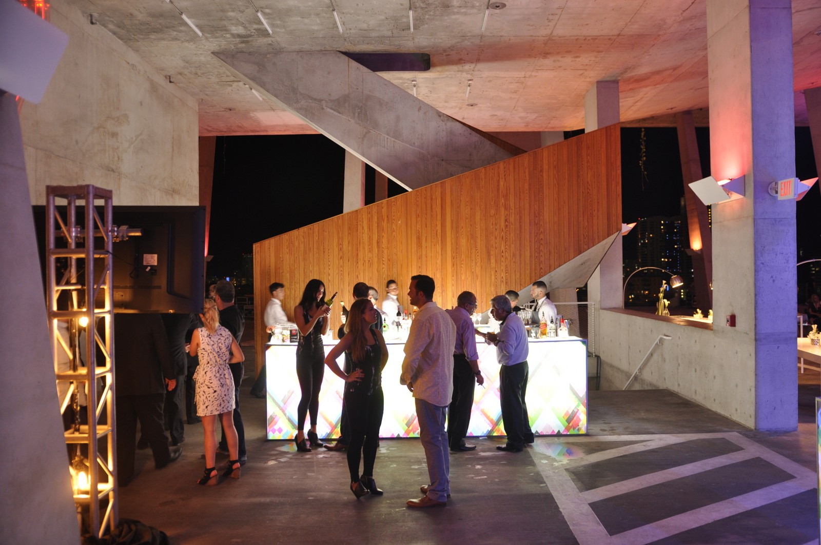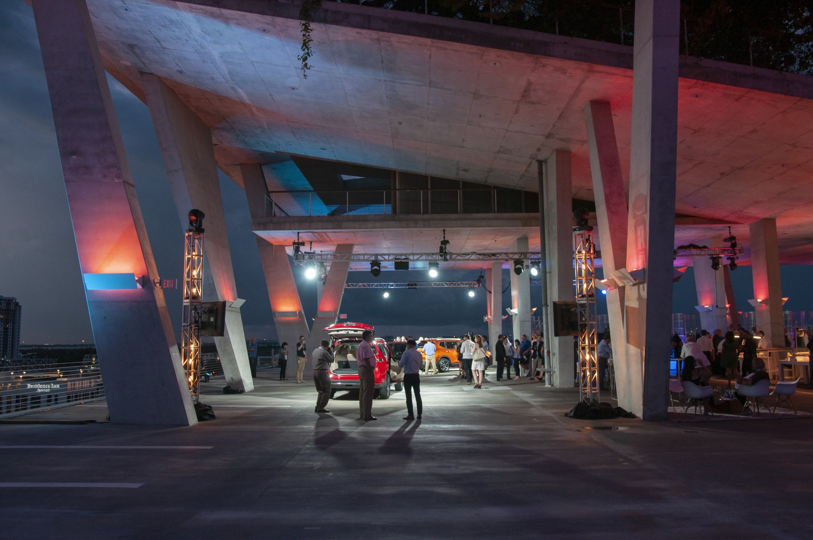 The combination of time-of-day, intriguing architecture and spectacular location made the event visually stunning. The background of the Miami Beach skyline at dusk gave way to the dynamically illuminated forms of the architecture. This minimalist aesthetic supported the exclusive occasion without distracting from the star of the show: the Nissan Rogue.