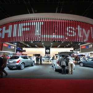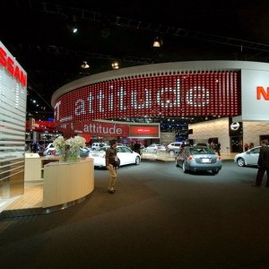 Nissan North American envisioned a media-rich environment for their North American auto shows. The George P. Johnson Company designed an all-new exhibit that put the visitor in an immersive experience conveying the passion and emotion that Nissan's vehicles share with the lives of their customers. In addition, media events held inside the exhibit space were broadcast via satellite to global Nissan offices, and via traditional media and internet channels to the worldwide public.