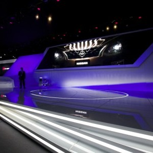 Lightswitch worked with experience marketing agency George P. Johnson Company to create exhibit and event lighting in keeping with Nissan’s new branding. Inspired by the aerodynamic shape of vehicle exteriors, the new exhibit pairs a complex architectural style with a sleek, minimal color palette. Lightswitch used high light levels to create a clean, bright environment that stood out against its surroundings. Nissan also unveiled its 2013 Altima at a press event led by CEO Carlos Ghosn. Lightswitch designed additional staging and media for the event.