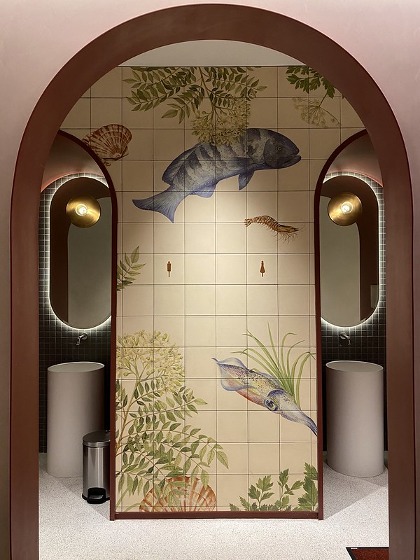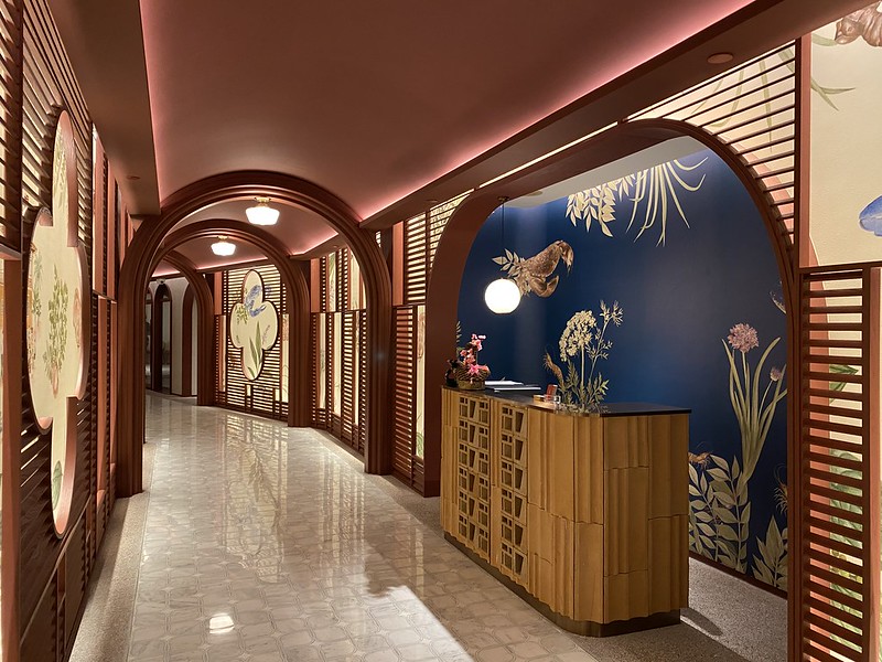 Our lighting design welcomes patrons into the eatery through a softly-lit hallway. We opted to exclude downlighting, instead drawing illumination from ambient lighting on the walls. This approach creates a comforting ambience, allowing guests to enter the space peacefully.