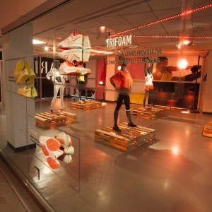 As part of Reebok’s 2014 sales meeting, the company transformed its corporate headquarters into a pop-up store experience. GO! Experience Design created temporary gallery and product displays in Reebok’s indoor workout spaces where guests could view its new product line, including the recently revamped Reebok pump shoe.