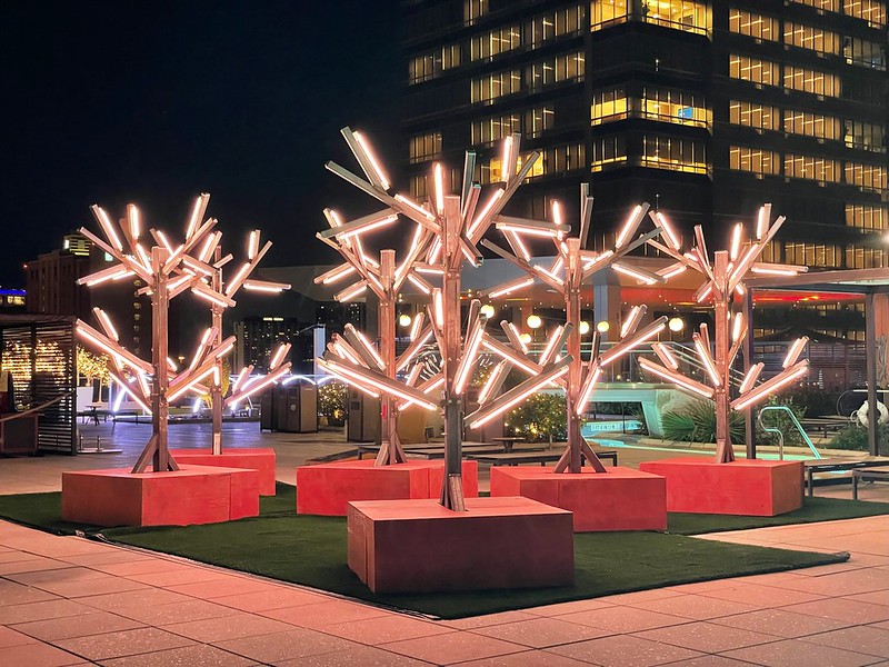 After working on a similar project with Houston Marriott Marquis previously, Lightswitch was able to take complete creative control during Texas Winter Lights. The process was efficient thanks to our many creative and manufacturing partners. While this event was born out of the hotel’s desire to capitalize on pandemic “staycation” traffic, we ended up creating a staple destination for the downtown area. We hope to continue building on this project, bringing in business for the hotel, and giving the people of Houston many evenings of wonder and entertainment during the winter months.