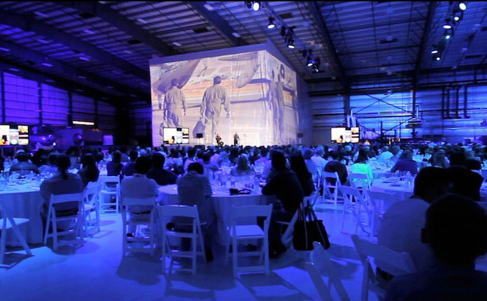 In partnership with Virgin Galactic Head of Marketing Production Susan Newsam and Executive Producer Fritha Knudsen, Lightswitch designed all aspects of the production for a day of events staged throughout the Virgin Galactic manufacturing and operations facilities. We worked with the facility staff to ensure we disrupted the business of building spaceships as little as possible, while transforming the industrial facilities into exciting, dynamic presentation spaces. We used the existing architecture and structures as surfaces for lighting and projection, including turning a ‘clean room’ structure into a giant dynamic projected backdrop for presentations. In the evening, guests returned to Los Angeles and celebrated and partied at the California Science Center under the wings of Space Shuttle Endeavor, a truly fitting location for a guest list of astronauts past, present and future.